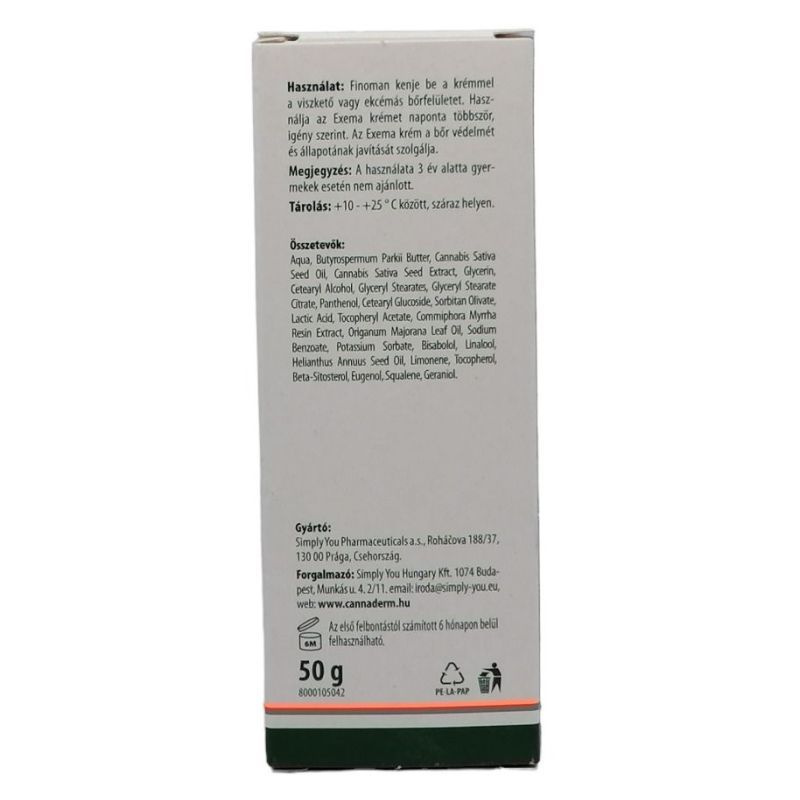 Alkalmazás: ekcémás akut tünetek gyors enyhítésére szolgáló bőrnyugtató krém. Használat: finoman kenje be a krémmel a viszkető vagy ekcémás bőrfelületet. Használja az Exema krémet naponta többször, igény szerint. Az Exema krém a bőr védelmét és állapotának javítását szolgálja. Megjegyzés: A használata 3 év alatta gyermekek esetén nem ajánlott. Tárolás: +10 - +25 ° C között, száraz helyen.