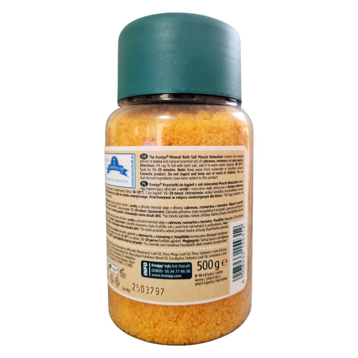 A Kneipp Mineral Bath Salt Muscle Relaxation fürdősó különleges összetevői, mint az árnika-kivonat és a természetes illóolajok, segítenek az izmok ellazításában és a feszültség oldásában. A termék 250 millió éves óceán sólerakódásaiból származó tengeri sót tartalmaz, amelyet a Luisenhall sólepárlóban nyernek ki. A fürdősó használata egyszerű: a kupakot 3/4-ig töltse meg a sóval, és adja hozzá a meleg fürdővízhez, majd élvezze a 15–20 perces pihentető fürdőt. A termék vegán, és nem tartalmaz állati eredetű összetevőket, így ideális választás azok számára, akik természetes és etikus kozmetikumokat keresnek.