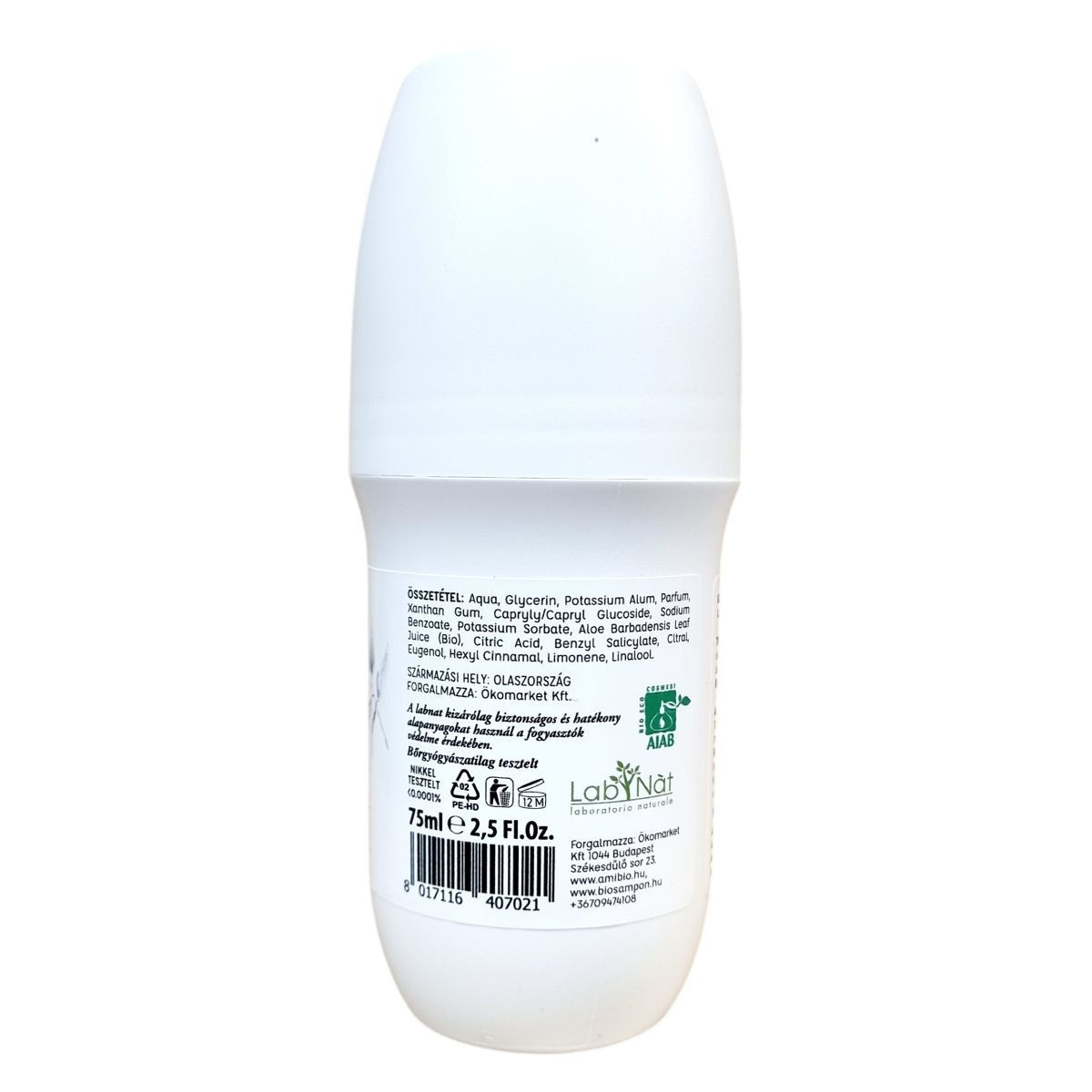 A LabNát golyós dezodor természetes összetevőkkel készül, kizárólag biztonságos és hatékony alapanyagokat használva a fogyasztók védelmében. Alkohol-, parabén-, alumíniumsó- és SLS-mentes, valamint hajtógázmentes formulájának köszönhetően kíméletes, mégis hatékony védelem nyújt. A termék nem hagy foltot a ruházaton, és bőrgyógyászatilag tesztelt, nikkel tesztje pedig kimutatta az <0,0001%-os nyomnyi mennyiséget, ami az allergiás reakciók kockázatának csökkentésére utal. A termék eredeti származási helye Olaszország, kiszerelése 75 ml (2,5 Fl.Oz).
