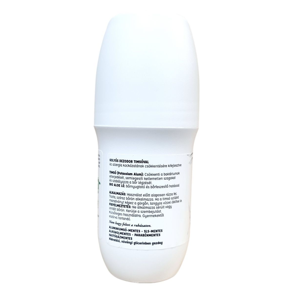 Timsó (Potassium Alum) a baktériumok terjedésének csökkentésére és a kellemetlen szagok semlegesítésére, bio aloe leve bőrnyugtató és bőrfeszesítő hatással.
