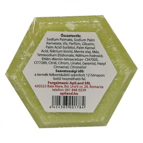 A mézes, mentás és citromos szappannak jótékony hatása van a bőrre, mivel olyan növényekből származó mézet és növényi olajokat tartalmaz, amelyeknek különleges kozmetikai hatásai vannak. A méz, a borsmenta olaj és a citrom együttese friss és mentolos illatot eredményez, amely élénkítően hat egész testünkre. Mellesleg ezek az összetevők fokozzák a méz pattanásgátló erejét. Ez a frissítő és hűsítő mézes, mentás és citromos szappan mélyen tisztítja, hidratálja a bőrt és ugyanakkor serkenti a vérkeringést.