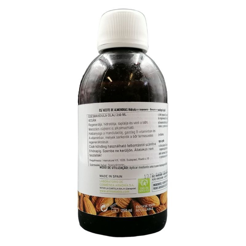 Hatóanyaga a mandulaolaj gazdag B-vitaminokban és A-vitaminban, melyek serkentik a bőrt természetes regenerálódását. Kisbabák bőrének táplálására és kismamáknak a striák megelőzésére is ajánlott a használata. Vegán.