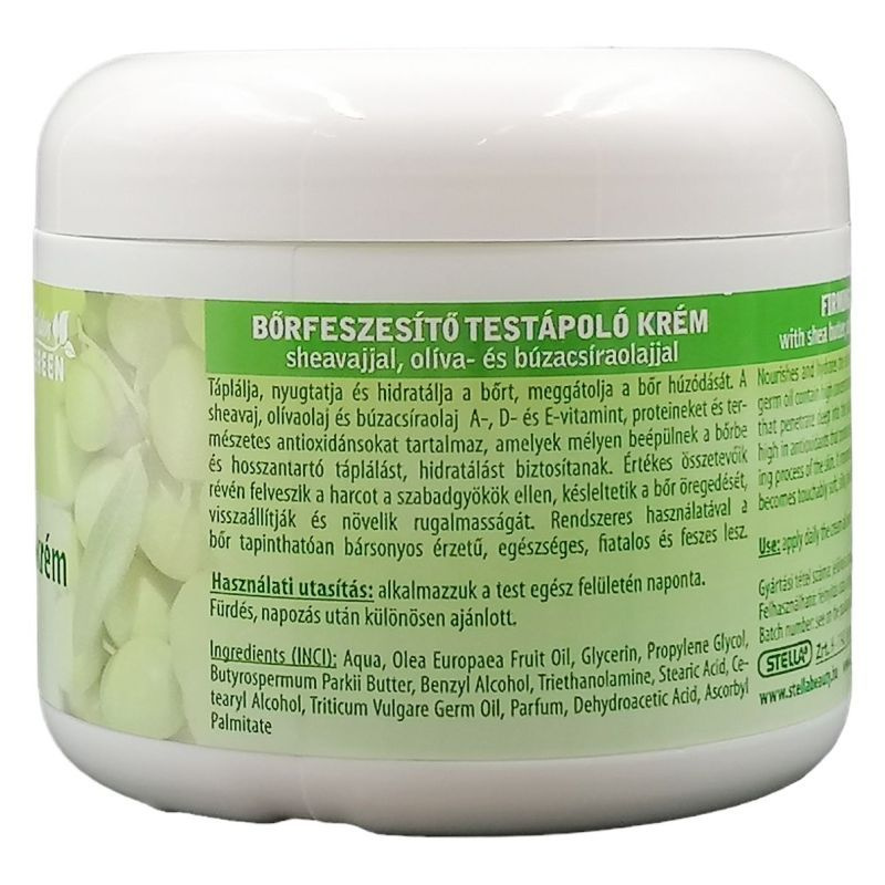 Testápoló olívaolajjal és búzacsíra olajjal, segít javítani a test kontúrjain, feszesebbé és tömörebbé teszi a bőrt és simább kinézetet kölcsönöz neki.