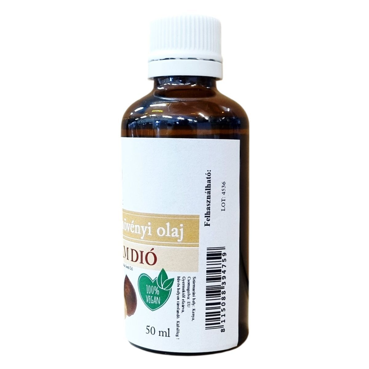 Ez a 100%-ban természetes makadám dióból készült növényi olaj tisztaságát és minőségét a termék neve és az összetevők egyértelműen jelzik. Kiszerelése 50 ml, a termék vegán, amelyet a természetesség kedvelői és a tudatos bőrápolást választók számára fejlesztettek ki. A termékazonosító (LOT: 4536) és a vonalkód (8115088394759) garantálja a nyomon követhetőséget, valamint a minőségbiztosítást. Az olaj INCI megnevezése Macadamia Integrifolia Seed Oil, amely valódi alapanyagként szolgál különböző bőrápolási célokra.