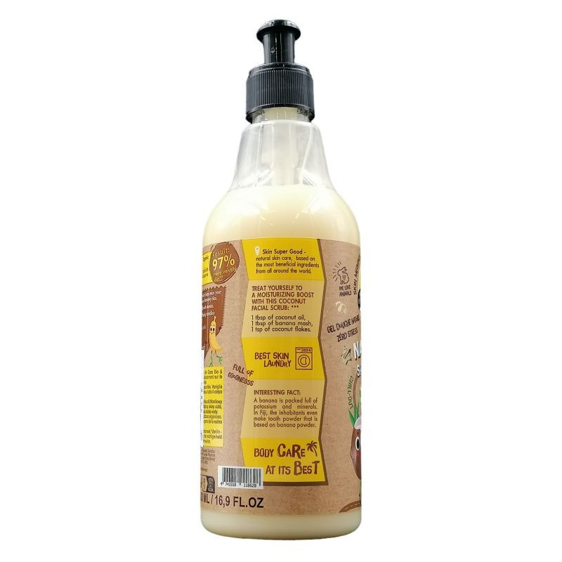 Összetevők: Aqua, Sodium Coco-Sulfate, Lauryl Glucoside, Cocamidopropyl Betaine, Sodium Chloride, Sapindus Trifoliatus Fruit Extract, Musa Sapientum Fruit Extract*, Cocos Nucifera Oil*, Vanilla Planifolia Fruit Extract*, Coco-Glucoside, Glyceryl Oleate, Styrene/Acrylates Copolymer, Glycerin, Citric Acid, Benzyl Alcohol, Benzoic Acid, Sorbic Acid, Parfum, CI 19140, CI 15985.