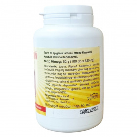 Taurin és apigenin tartalmú étrend-kiegészítő kapszula polifenol tartalommal.