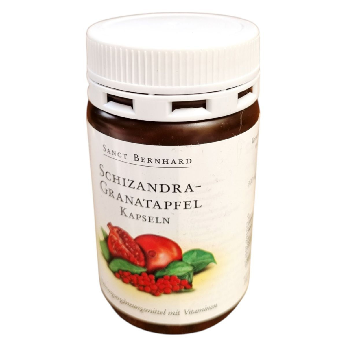 A SANCT BERNHARD Schizandra-Gránátalma kapszula egy étrend-kiegészítő, amely 90 kapszulát tartalmaz. A termék fő összetevői a schizandra és gránátalma kivonatok, amelyek antioxidáns tulajdonságokkal bírhatnak. A B6-, B12-vitamin és folsav hozzájárulhatnak az immunrendszer normál működéséhez. A kapszulák zselatinból készültek, és tartalmaznak kukoricakeményítőt, valamint csomósodást gátló anyagokat is. A termék Németországban készült, és a magyarországi forgalmazója az ODP Vital Kft. A kapszulákat száraz, sötét helyen, 25 °C alatt kell tárolni, és a gyermekektől elzárva tartandók. Az ajánlott napi mennyiséget nem szabad túllépni.
