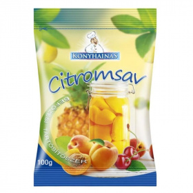 Citromsav (beltartalom minimum 99. 5%) granulátum. Felhasználható: szörp, üdítő, dzsem, gyümölcsbor készítésére, savanyúságok, befőttek tartósítására, vízlágyításra. Alkalmazás és adagolás: befőzéskor a citromsavas vízbe helyezett zöldség, gyümölcs megtartja eredeti színét és zamatát, ropogós és friss ízű marad. Az ízlés szerinti mennyiségű (befőttnél, savanyúságnál 3-4 g/kg, gyümölcslénél 2-4 g/l) citromsavat vízben feloldjuk, és a készítményhez hozzáadjuk. Citromlé helyettesítésére is használható, ebben az esetben 1 evőkanál citromsav 10 evőkanál citromlének felel meg. Tárolás: száraz, hűvös, napfénytől védett helyen tároljuk.