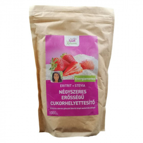 A keverék eritritet és steviát tartalmaz, amely négyszeres édesítőerejével kis mennyiségben is intenzív ízt ad.