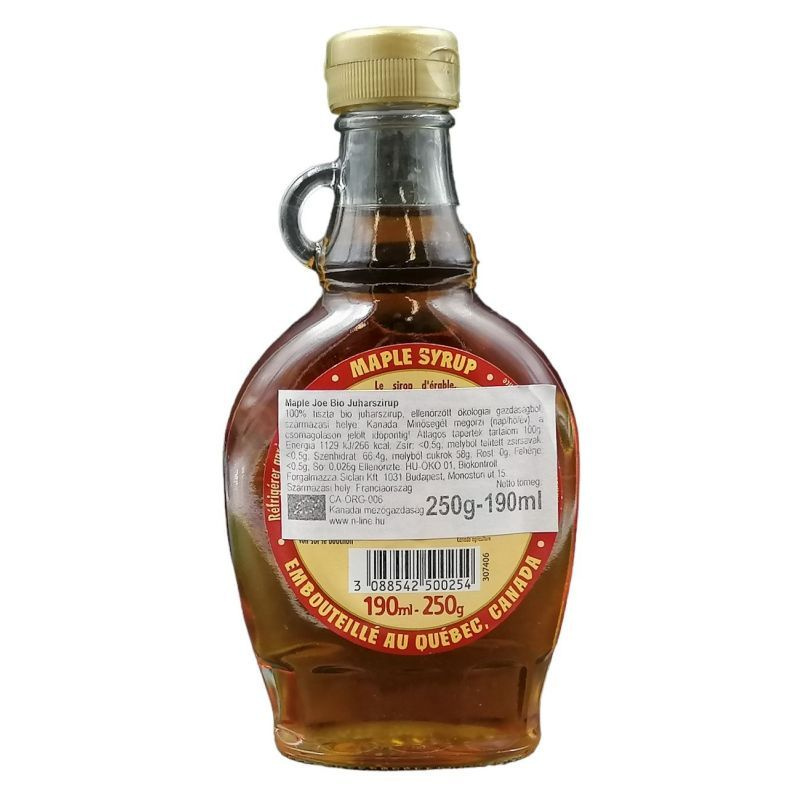 A 100%-os tisztaságú juharszirup a kanadai erdők mélyéből származik, a juharfa nedve, egyike a természetes cukroknak, édesítőknek. Meleg, borostyán színével, a tiszta juharszirup egyedi ízvilágával a maple joe elcsábítja a kis és nagy ínyenceket egyaránt. A tiszta juharsziruppal könnyen ízesítheti a palacsintát, joghurtokat, sós és fehér húsból készült ételeit. A juharszirupot a Michaud családi méhészet importálja kanadából. Tárolási javaslat: felbontás után hűtőben tartandó.