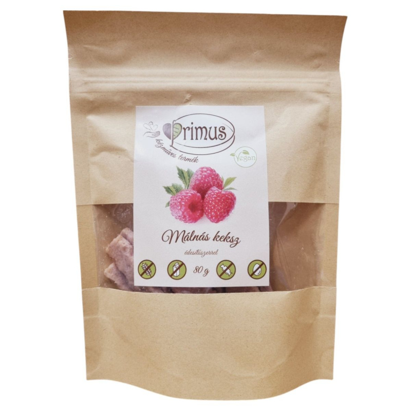 A csökkentett szénhidráttartalmú vegán keksz egy kézműves termék, amely édesítőszerrel készül, így ideális lehet azok számára, akik alacsony szénhidráttartalmú étrendet követnek. A keksz természetes összetevőkből áll, mint a tápióka keményítő, mandula és kókusz alapú összetevők, valamint fagyasztott málna. Az édesítést eritrit és stevia biztosítja. A termék Magyarországon készül, és 80 g-os kiszerelésben kapható. Tárolása száraz, hűvös helyen ajánlott.