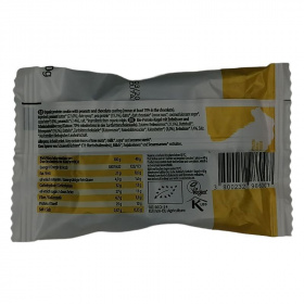 Összetevők: földimogyoróvaj* (27,6%), datolyaszirup*, borsófehérje* (19,3%), datolya*, étcsokoládé*(kakaómassza*, kókuszvirágcukor*, kakaóvaj*) (8%), földimogyoró* (7,4%), só.*Összetevők bio gazdálkodásból