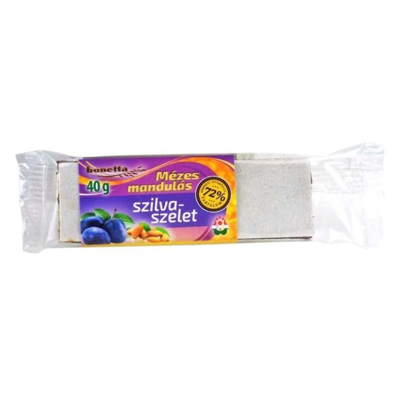 A Bonetta mézes mandulás szilva szelet egy ízletes és tápláló snack, amely tökéletes választás lehet mindazok számára, akik aktív életmódot folytatnak. A 40 grammos kiszerelés praktikus, így könnyen magunkkal vihetjük edzésre, kirándulásra vagy akár a munkahelyünkre is. A szelet gazdag természetes összetevőkben, amelyek nemcsak finomak, hanem táplálóak is. A mazsola és aszalt vörös áfonya édes íze harmonikusan kiegészíti a mandula ropogós textúráját, míg a méz természetes édességet és energiát biztosít. A rizsliszt pedig segít a szelet állagának megőrzésében, így minden falat élvezetes és laktató.