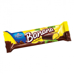 Étcsokoládéval bevont gluténmentes banános zselé (76%) szelet.
