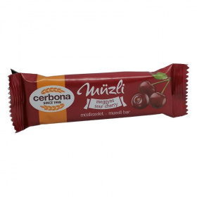 A Cerbona meggyes müzliszeletet többfajta gabonapehely, méz, meggy és csokoládé darabok teszik igazán ellenállhatatlanná.