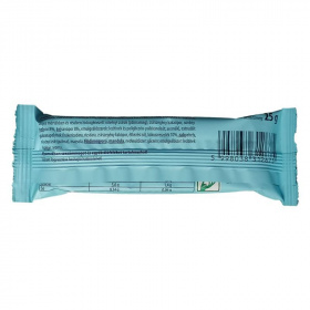 Téglatest alakú, kellemesen édes, kókuszos müzliszelet kókuszreszelék szórással a tetején.