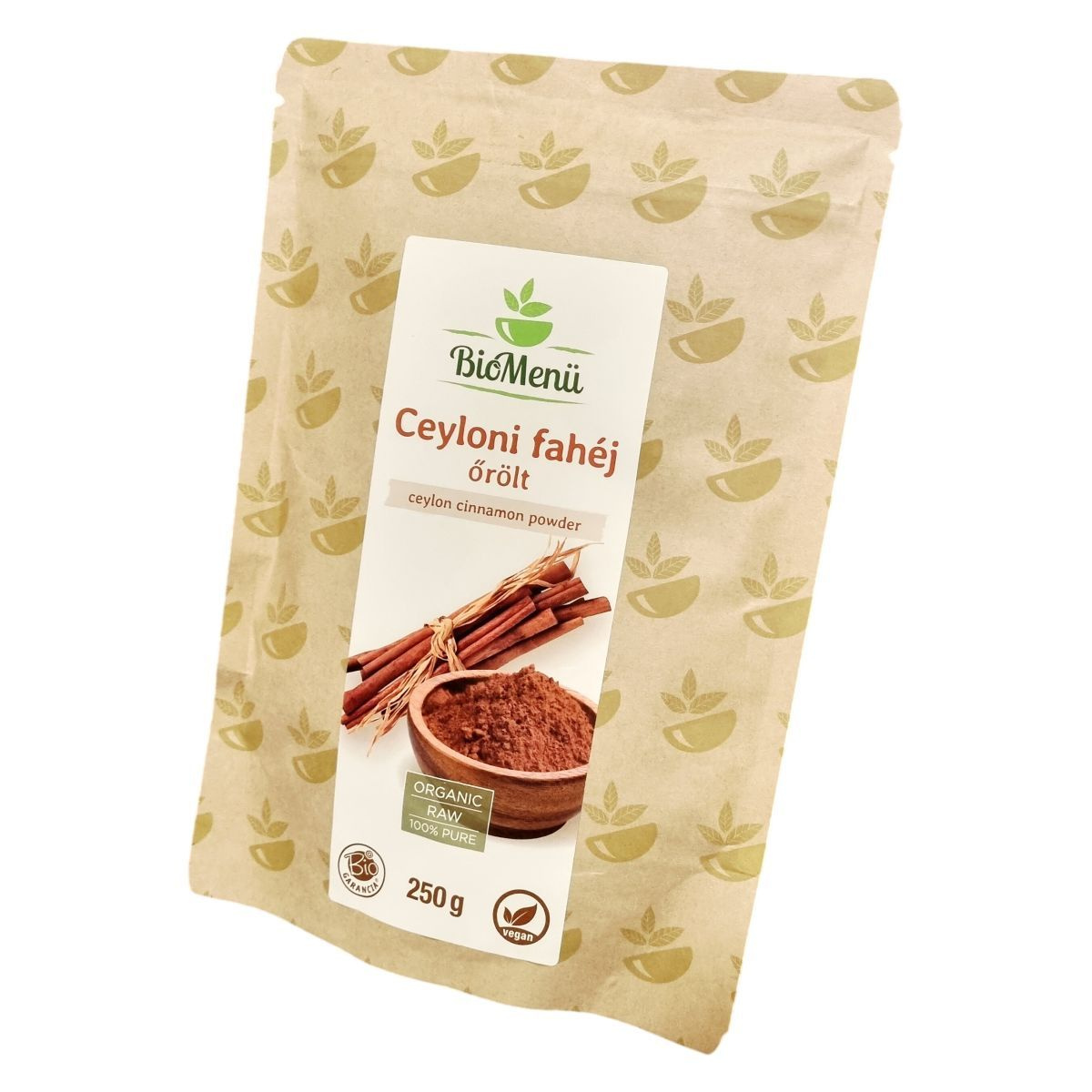 A BioMenü Ceyloni fahéj Sri Lankáról származik, ahol kiváló minőségű, bio termesztésből származó fahéjat állítanak elő. A termék 250 grammos kiszerelésben érhető el, mely 166 adagot tartalmaz. A csomagolás veganbarát, és garantáltan tiszta, 100%-ban természetes, bio alapanyagból készült. A termék nem EU mezőgazdaságból származik, és a HU-ÖKO-02 tanúsítvány igazolja minőségét. A fahéj őrölt formában kerül forgalomba, így könnyen adagolható bármilyen ételhez vagy italhoz. Mint természetes fűszer, a fahéj jellegzetes aromáján kívül a rosttartalma is kiemelkedő. A tárolásnál fontos a száraz, hűvös és fénytől védett hely választása a minőség megőrzése érdekében.