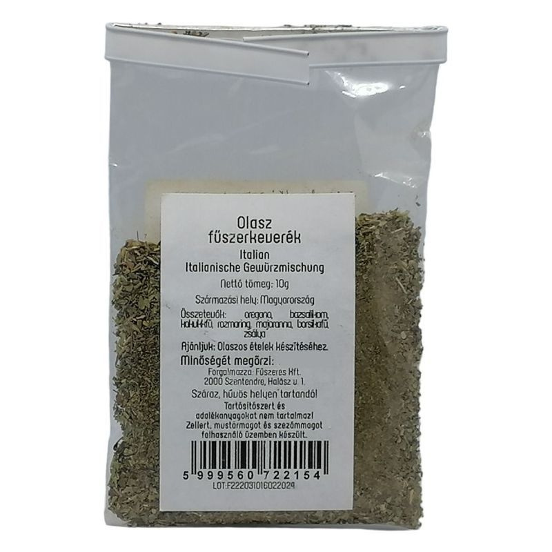 Összetevők: oregano, bazsalikom, kakukkfű, rozmaring, majoranna, borsikafű, zsálya.