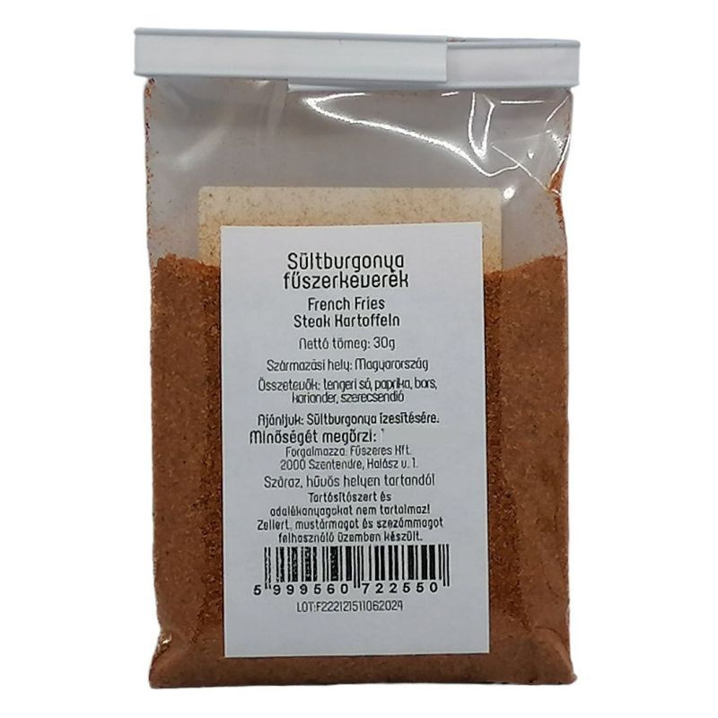 A keverék tengeri sót, fokhagymaport és fűszereket tartalmaz, kifejezetten sült burgonya ízesítésére készült.