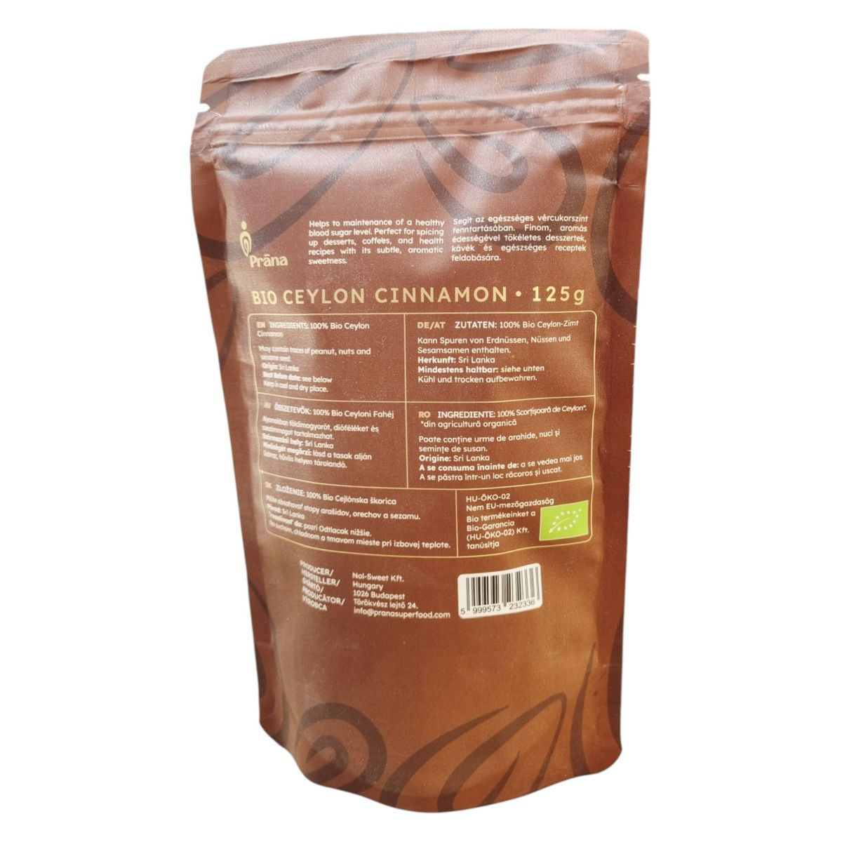 A Prana BIO CEYLON CINNAMON egy 100% természetes, bio és vegán fűszer, amely a valódi Ceylon fahéj édes ízével gazdagíthatja ételeidet és italaidat. A termék gluténmentes, így különböző étrendi igényeknek is megfelelhet. A Ceylon fahéj Sri Lankáról származik, és a Bio-Garancia (HU-ÖKO-02) Kft. tanúsítja. A termék nyomokban földimogyorót, dióféléket és szezámmagot tartalmazhat, ezért allergiások számára körültekintően ajánlott a fogyasztása. A gyártó Nol-Sweet Kft., amely Budapesten található.