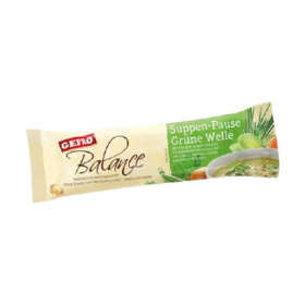Gefro Balance zöldborsó levespor. Snack leves - zöldborsó levespor. Minőségi garancia: vegán, gluténmentes, laktózmentes, értékes élelmi rostokat tartalmaz. Nem tartalmaz hozzáadott cukrot, lisztet, keményítőt, színezéket és tartósítószert, ízfokozó adalékokat. Elkészítés: a tasak tartalmát 2,5 dl forró vízzel alaposan keverje el. Kész is! jó étvágyat!