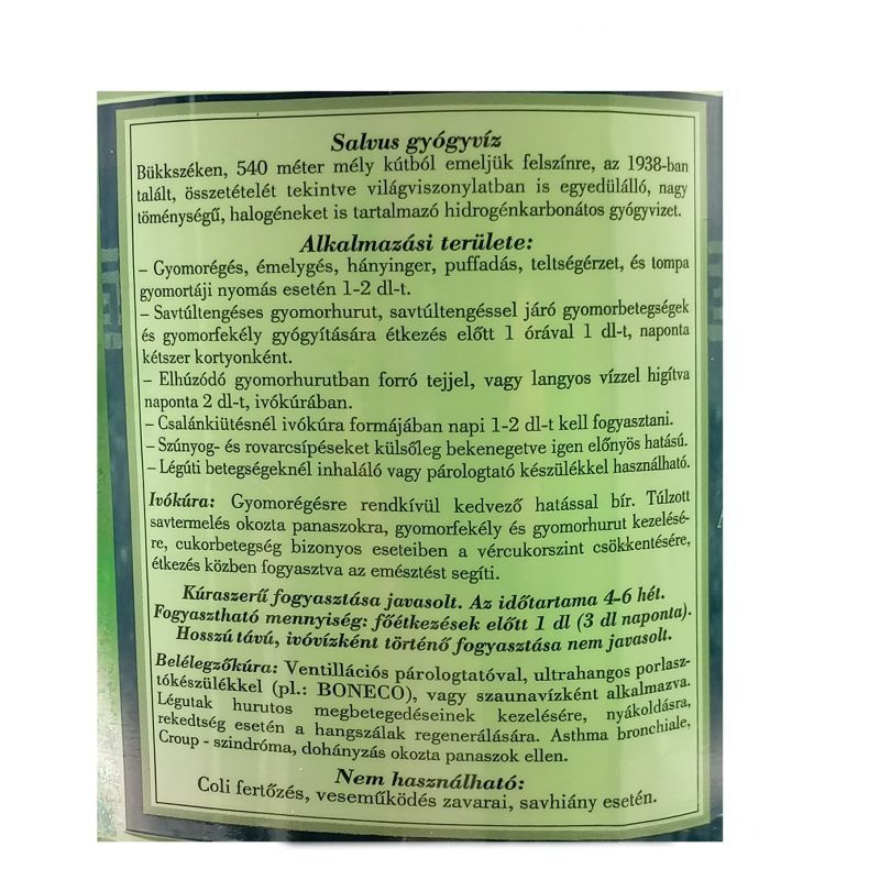 A Salvus víz ásványi anyagokban gazdag, lúgos kémhatású.
