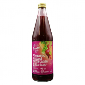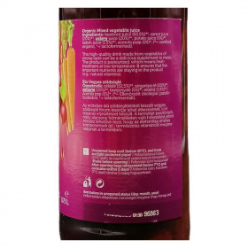 Összetevők: céklalé* 52,5%, sárgarépa-lé* 20%, zellerlé* 20%, burgonyalé* 5%, reteklé* 1,5%, acerola cseresznye* 1%. *Ellenőrzött ökológiai gazdálkodásból származó alkotó.