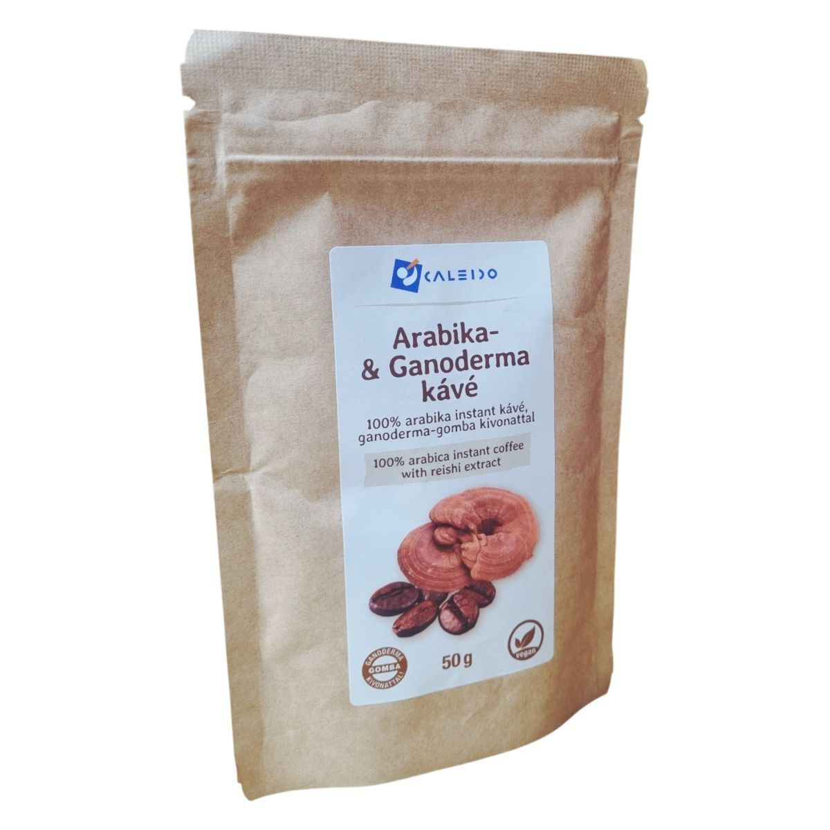 A Caleido Arabika- és Ganoderma kávé 100% arabika instant kávéból és ganoderma-gomba kivonatból készül. Ez a vegán termék különleges ízélményt nyújt, miközben a ganoderma gomba jótékony hatásait is élvezheti.