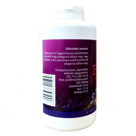 Szárított vörösszőlő egész és őrölt mag-héj, édesítőszer: eritritol, szárított feketeszeder mag-héj őrlemény, szárított feketeribizli mag-héj őrlemény, szárított pirosribizli mag-héj őrlemény, szárított csipkebogyó mag-héj őrlemény.