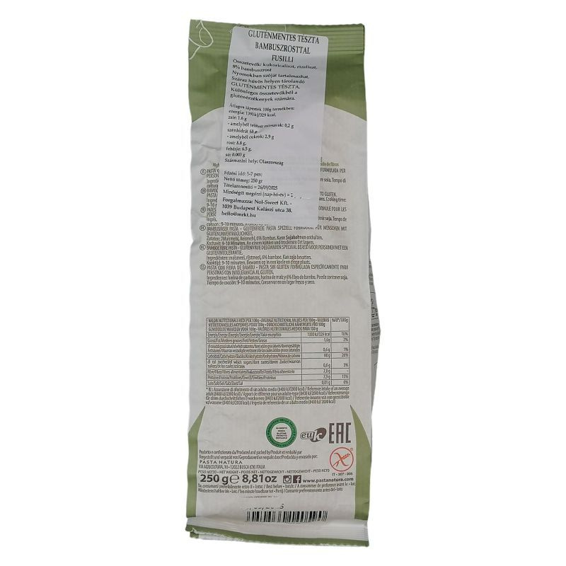 Gluténmentes tészta bambusztészta - Fusilli