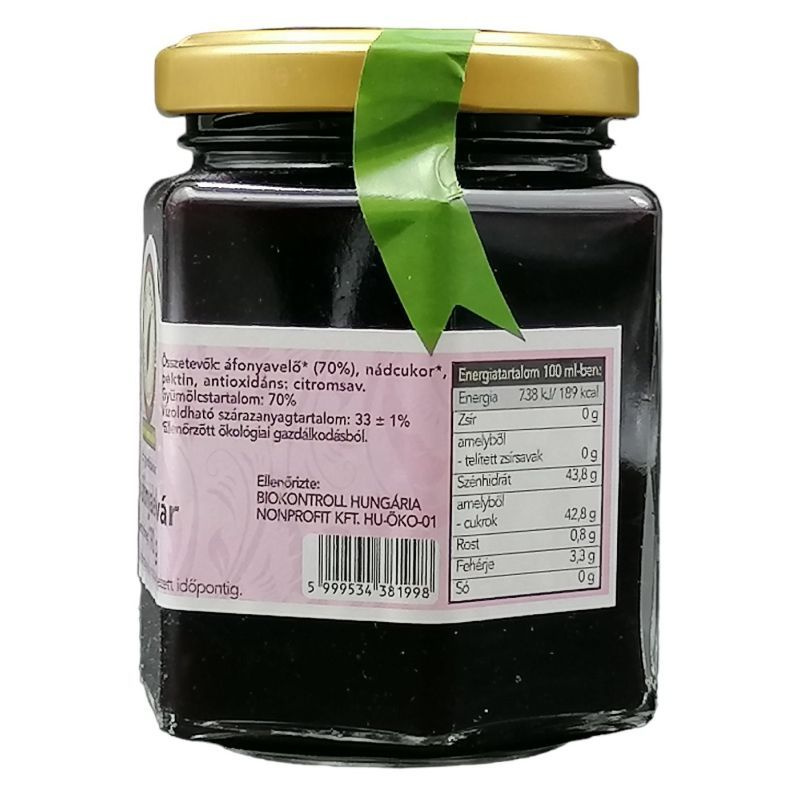 Összetevők: áfonya* (70%), nádcukor*, pektin, antioxidáns: citromsav. *Ellenőrzött ökológiai gazdálkodásból származó termék. Ellenőrizte: Biokontroll Hungária Nonprofit Kft. HU-ÖKO-01.