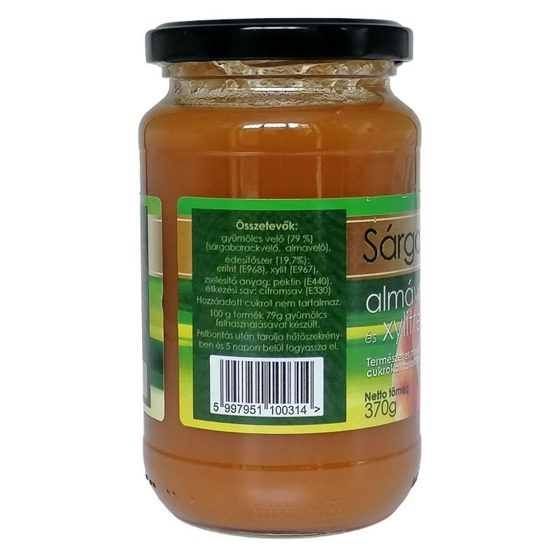 Összetevők: gyümölcs velő (79%) (sárgabarackvelő, almavelő) édesítőszer (17,9%): eritrit (E968) xylit (E967) zselésítőanyag: pektin (E440) étkezési sav: ctiromsav.