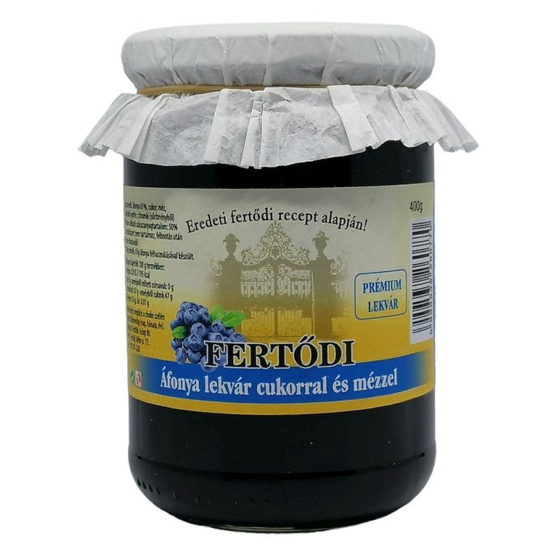 Áfonya lekvár mézzel. A mézes áfonyalekvár talán a legkedveltebb és legkeresettebb lekvárunk. Az áfonya kellemesen kesernyés- savanykás íze jól harmonizál a mézzel. Nagyon finom húsok mellé, de süteményekbe, vagy egy lekváros kenyéren fogyasztva is kellemes. A lekvár magában hordozza a feketeáfonya minden kedvező tulajdonságát, így nemcsak gasztronómiai, de egészségvédő hatását is élvezhetjük, magas a káliumtartalma, ezért szív és érvédő hatású, "fekete inzulinnak" is nevezik, mert csökkenti a vércukorszintet, sötét színanyagai miatt magas az antioxidáns tartalma, baktericid hatása miatt a húgyutakban megakadályozza az e-coli megtelepedését, látásjavító gyümölcsnek is nevezik, mert magas az A-vitamin, és a karotinoid tartalma, magas a kálium, vas, magnézium, C, B, vitamin tartalma, immunerősítő. Kell-e ennél több jót mondani egy lekvárról? Eredeti fertődi recept alapján készült áfonyalekvárunk nem tartalmaz semmilyen mesterséges színezéket illetve tartósítószert.
