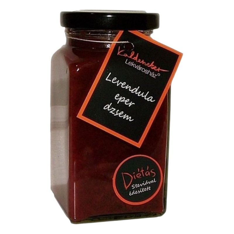 A levendula parfümillata szinte simogatóan járja át az érett és mézédes eperszemeket. Készült: eper, stevia, citromsav, levendulavirág, almapektin felhasználásával. Gyümölcstartalma: 99 g gyümölcs/100 g termékben.