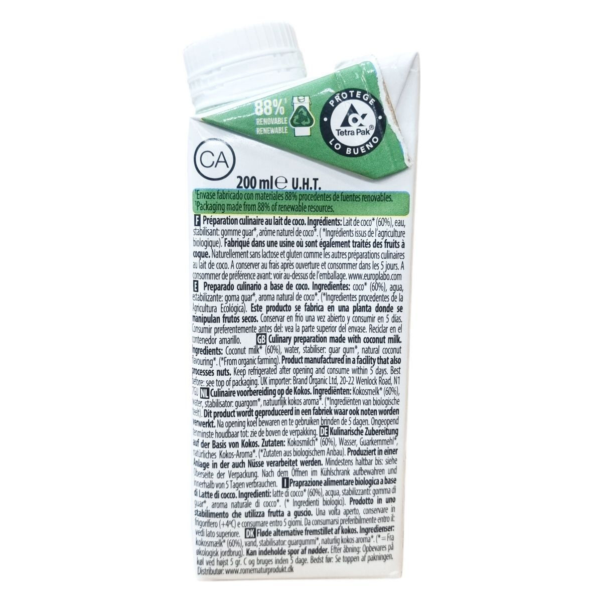 Ez a 200 ml-es, organikus kókusztejből készült kulináris készítmény tökéletes alternatíva a hagyományos tejalapú termékek helyett, természetes összetevőkkel és stabilizátorral (guargumi) a minőség megőrzéséhez. A csomagolás 88%-ban megújuló forrásból készült, környezetbarát Tetra Pak palackban érkezik. Száraz és hűvös helyen tárolandó, felbontás után hűtőben kell tartani, és 5 napon belül elfogyasztandó. Természetes glutén- és laktózmentességével, valamint vegán jellege miatt széles körben alkalmazható, figyelembe véve, hogy diót is feldolgozó üzemben készül. Az energiatartalma főként telített zsírsavakból származik, minimális cukortartalommal bír, így kíméletes összetételt biztosít az egészségtudatos étkezők számára.