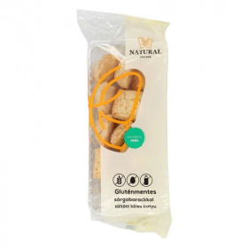 Közvetlen fogyasztásra alkalmas tej-, tojás-, cukor-, gluténmentes töltött keksz.