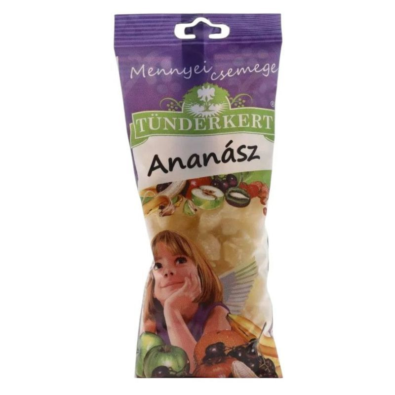 Tündérkert kandírozott ananász 100 g. Kis mennyiségben fellelhető benne mangán, kálium, kalcium és magnézium. A-vitaminok közül elenyésző mennyiségű a, b, C-vitamint tartalmaz. A benne található bromélia enzimek a fehérje emésztésében nyújtanak segítséget.