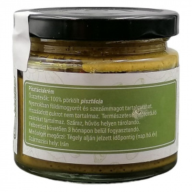 Kiváló minőségű pisztáciából készült, gazdag ásványi anyagokban és vitaminokban, ami miatt nemcsak ízletes, hanem tápláló is. A krém krémes állaga és gazdag íze miatt tökéletes választás reggelire, uzsonnára vagy desszertként, és remekül illik különféle ételekhez, például smoothie-khoz vagy süteményekhez.