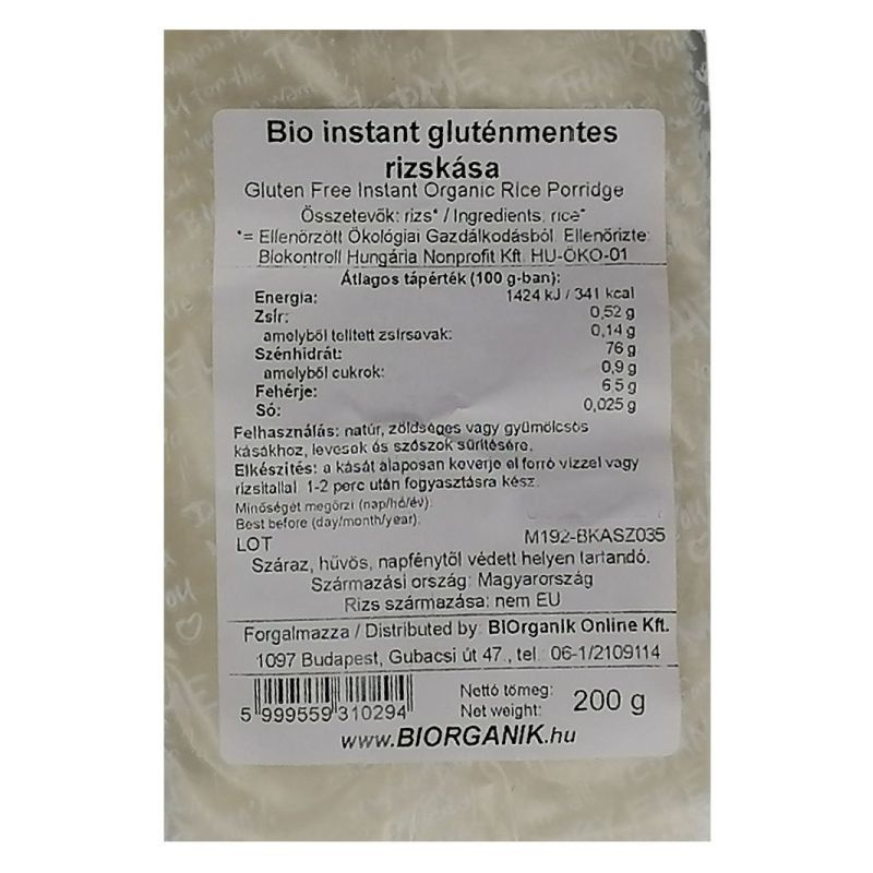 BiOrganik bio gluténmentes rizskása 200g