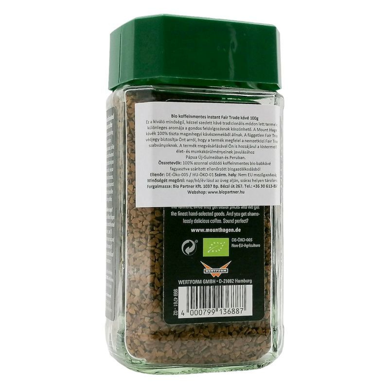 A Mount Hagen kávék 100%-os tiszta magashegyi kávészemekből állnak. A független Fairtrade védjegy biztosítja Önt arról, hogy a termék megfelel a nemzetközi Fairtrade szabványoknak. A termék megvásárlásával Ön is hozzájárul a kistermelői élet- és munkakörülményeinek javulásához Pápua Új-Guineában és Peruban.