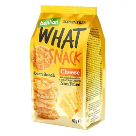A kukoricasnack természetes sajtpótló aromával készül, olaj hozzáadása nélkül sütve.