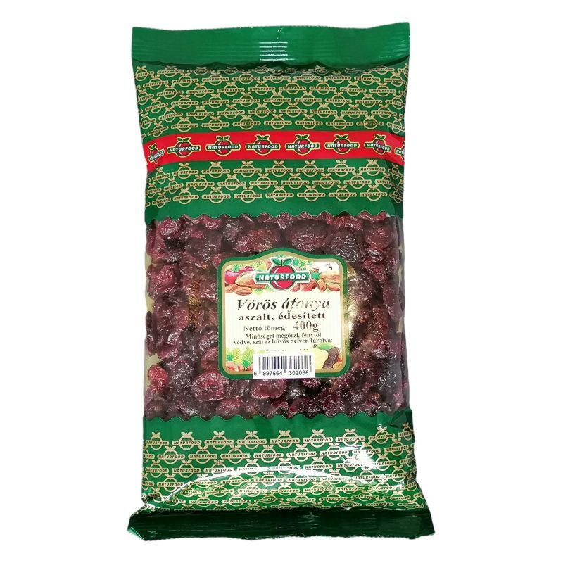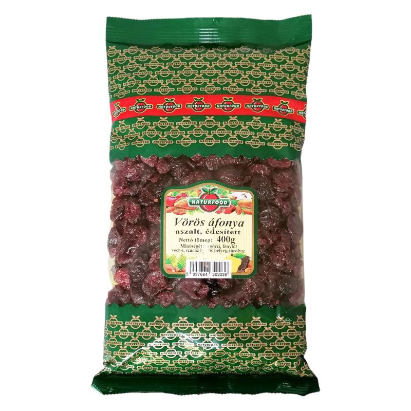 Összetevők: aszalt vörös áfonya, cukor, napraforgó olaj.