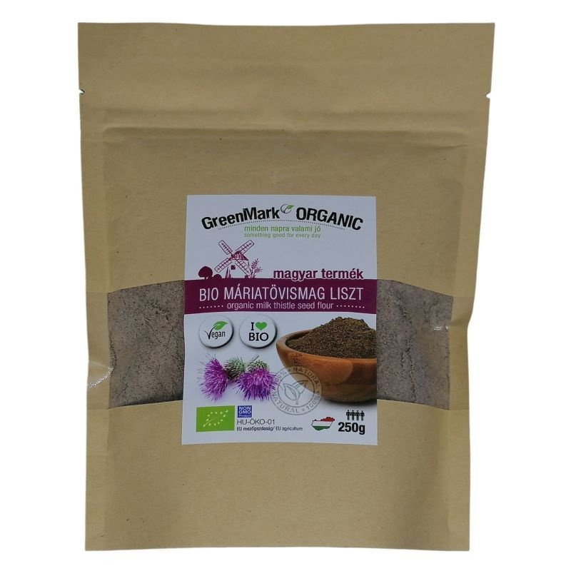 A máriatövismag liszt bio minőségű, magas rosttartalommal és természetes májvédő hatóanyaggal.