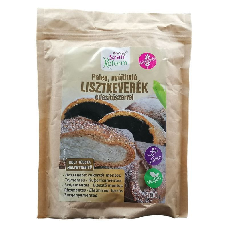 Átlagos tápérték 100 g lisztkeverékben: Energia: 912 kJ/219 kcal, zsír: 2,8 g -amelyből telített zsírsavak: 2,6 g, szénhidrát: 54,7 g -amelyből cukrok: 6,4 g -amelyből poliolok: 26,2 g, rost: 26,5 g, fehérje: 6,6 g, só: 0,04 g.