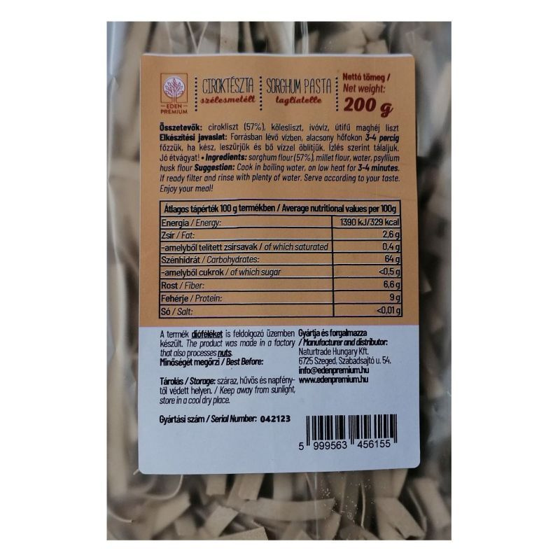Az Eden Premium ciroktészta kiváló minőségű recept alapján készül. Élvezeti értéke magas, állagát főzés után is kiválóan megtartja.
