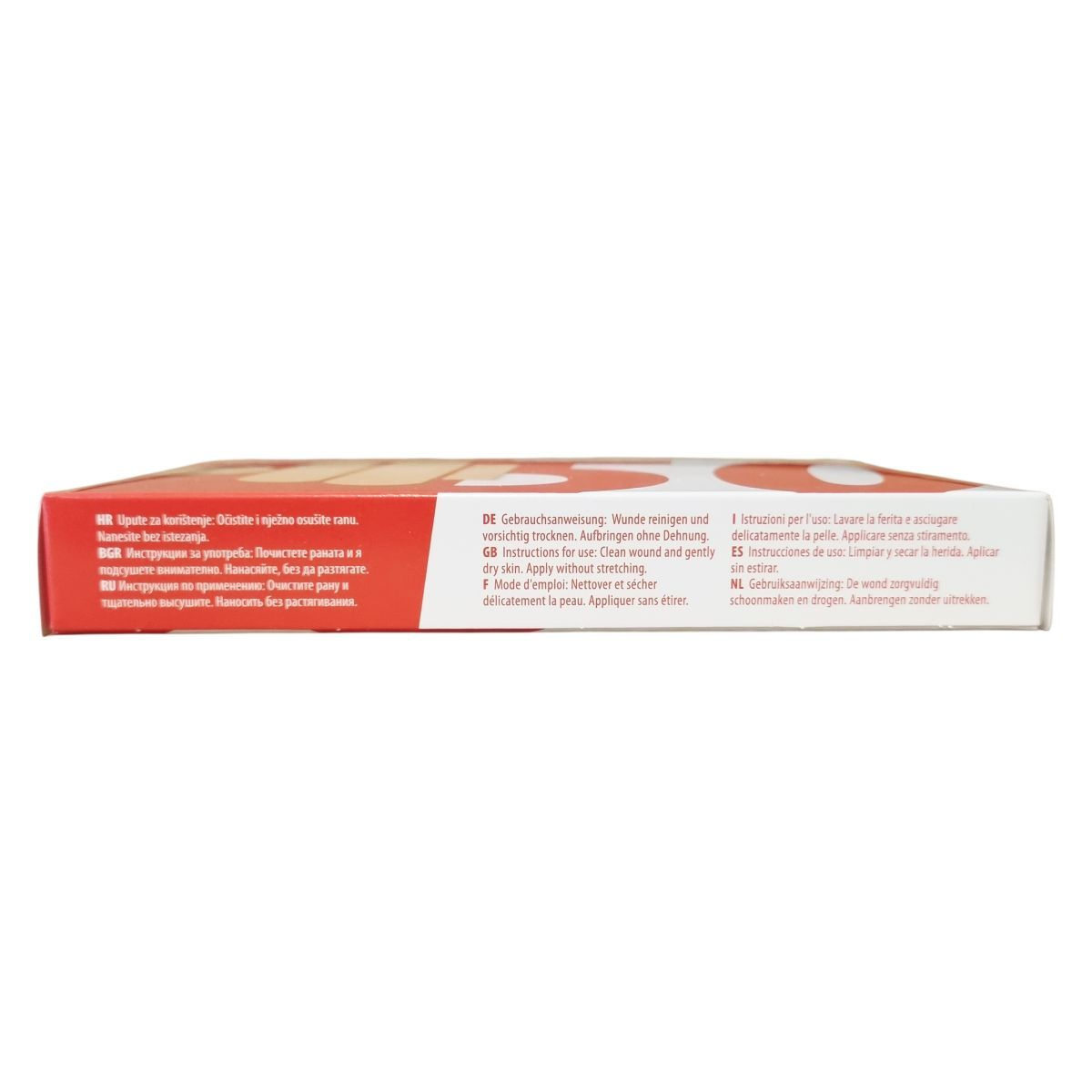 A termék 50 darab sebtapaszt tartalmaz négy különböző méretben: 10 db 25x25 mm, 10 db 40x10 mm, 10 db 63x19 mm és 20 db 60x17 mm. A tapaszok egyesével csomagoltak, így higiénikusak és könnyen használhatók. Az anyag antibakteriális, vízálló és légáteresztő képességgel bír, így segít megvédeni a sebet a külső hatásoktól, miközben elősegíti a gyógyulást. A használati utasítás több nyelven is elérhető, egyértelmű utasítást ad a seb tisztítására, szárítására és a tapasz megfelelő felhelyezésére vonatkozóan. A termék környezettudatos csomagolásban érkezik, így kisebb csomagolásban ugyanazt a tartalmat kínálja a környezet megóvása érdekében.
