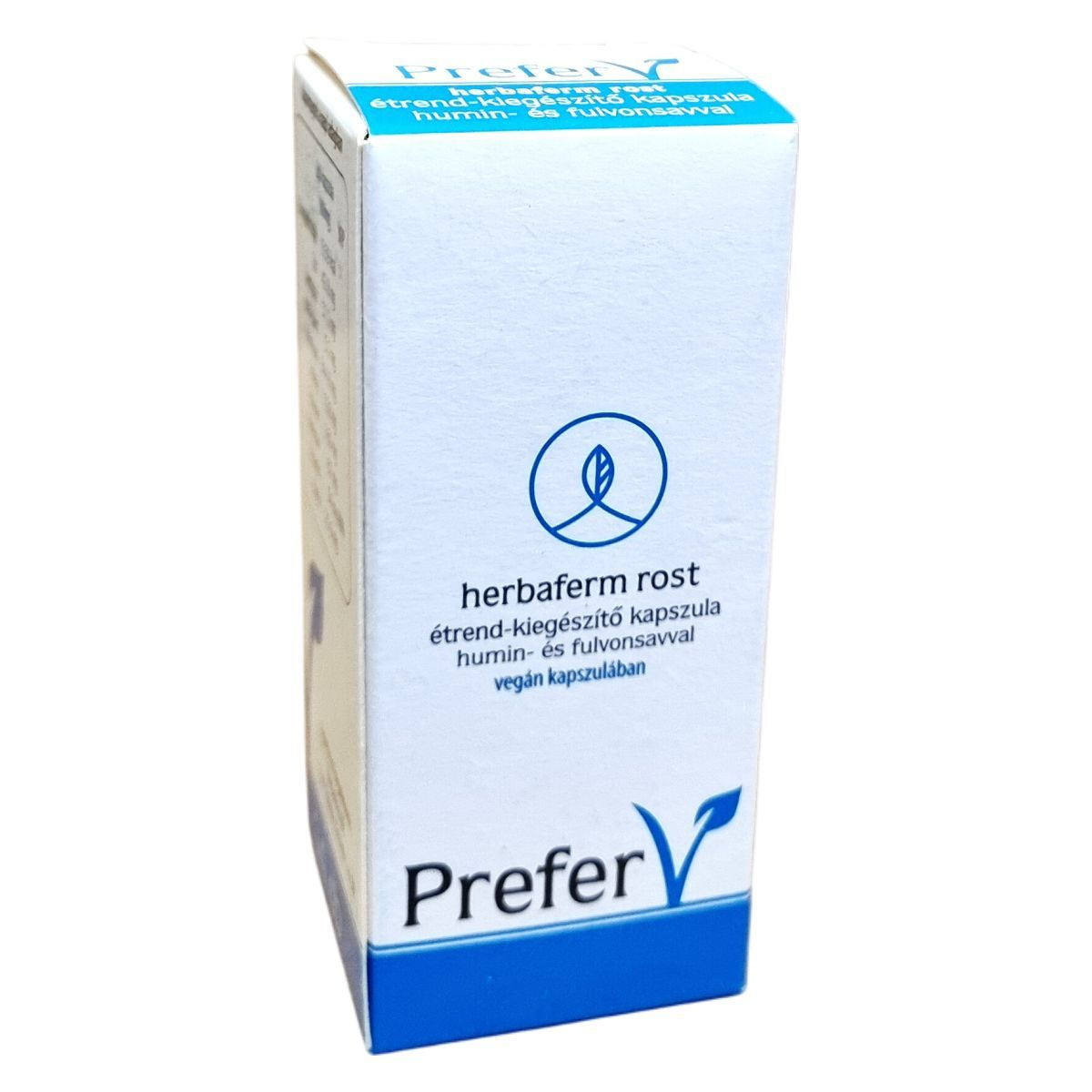 A Herbaferm rost étrend-kiegészítő kapszula egy vegán termék, amely humin- és fulvonsavval készült. A kapszula különféle gyógynövény rostokat tartalmaz, mint például matricariae flos, millefolii herba, és rosae pseudofructus. A termék napi kétszeri fogyasztása hozzájárulhat a szervezet egészséges működéséhez. A kapszulák tárolása hűvös, száraz helyen javasolt, gyermekek elől elzárva. A termék nem helyettesíti az egészséges étrendet és életmódot, és fontos, hogy az ajánlott napi mennyiséget ne lépjük túl.