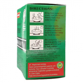 Fogyókúrás tea elkészítése: egy teafiltert 2 dl vízzel leforrázzuk és 10-15 percig lefedve állni hagyjuk. Langyosan fogyasztható, étkezés után az esti órákban. Minden tea elkészítéséhez új filtert használjon! Adagolás: naponta egy, szükség esetén két csésze tea elfogyasztása javasolt. Összetevők: zöldtea, mályva levél (30%), ginseng gyökér.