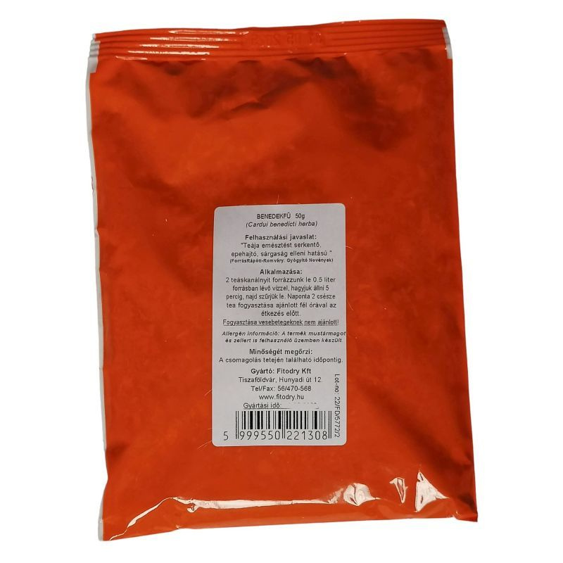 A benedekfű (Cnicus benedictus) keserűanyagokat tartalmazó gyógynövény, amely az őszirózsafélék (Asteraceae) családjába tartozik. Fő bioaktív vegyületei közé tartoznak a szeszkviterpén-laktonok – különösen a cnicin –, valamint flavonoidok és egyéb fitovegyületek. Ezek az összetevők kapcsolatba hozhatók az emésztőrendszer működésével, mivel a keserűanyagok hozzájárulhatnak az emésztőnedvek termelődésének élettani szabályozásához. Hagyományosan étvágyfokozó és emésztést támogató növényként alkalmazzák, különösen keserű gyógynövény-keverékek részeként. A növény hatóanyagai az emésztőrendszeri reflexmechanizmusokon keresztül fejthetik ki hatásukat. Étrend-kiegészítőkben és gyógyteákban szárított növényi rész vagy kivonat formájában fordul elő. Fogyasztása általában mérsékelt mennyiségben biztonságosnak tekinthető, azonban bizonyos egészségügyi állapotok esetén körültekintést igényel. Egyéni egészségügyi állapot vagy gyógyszerszedés esetén javasolt szakemberrel konzultálni.