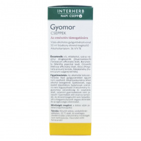 Az INTERHERB NAPI CSEPP Gyomor Cseppek egy vizes-alkoholos gyógynövénykivonat, amely 36 V/V % alkoholt tartalmaz. A termék célja az emésztés támogatása, és a benne található gyógynövények, mint a gyermekláncfű, borsmenta, citromfű, ánizs és édeskömény, hozzájárulhatnak a normál bélműködéshez és az emésztés megőrzéséhez. A termék használata előtt fontos figyelembe venni a figyelmeztetéseket, különösen az alkoholtartalom miatt.